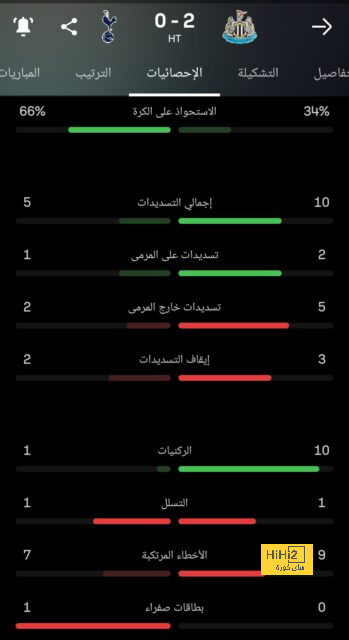 إحصائيات شوط توتنهام و نيوكاسل كالتالي: