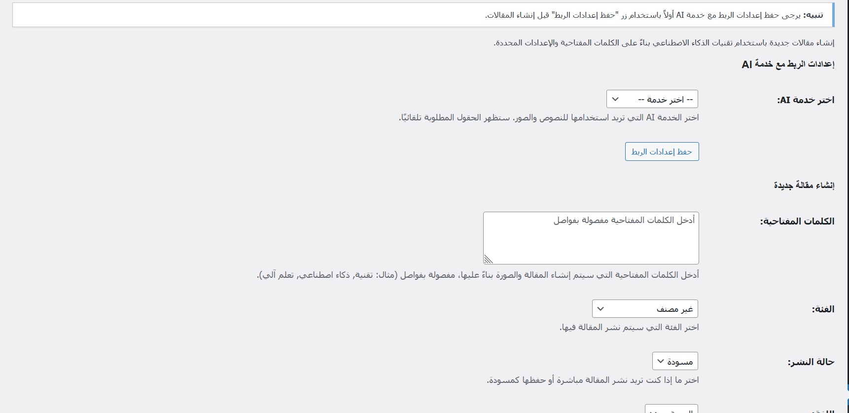 إذا كنت بحاجة إلى محتوى جديد من الصفر، فإن الإضافة مجهزة بتقنية ذكاء اصطناعي متقدمة لتوليد مقالات كاملة بناءً على الموضوعات التي تختارها.